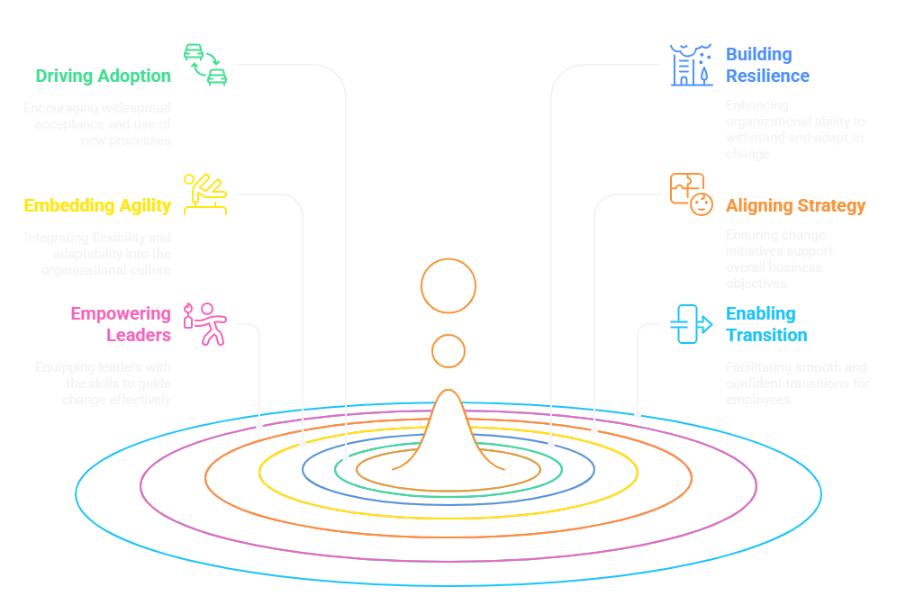 In today’s hyper-digital, fast-paced business world, change is constant—and increasingly complex. By 2025, organizations are undergoing transformation at unprecedented speed, driven by AI adoption, digital operating models, ESG mandates, and new workforce expectations. However, change fatigue, resistance, and lack of engagement continue to derail initiatives. Effective change management is no longer about communication plans alone—it’s about driving adoption, building resilience, and embedding agility into culture.