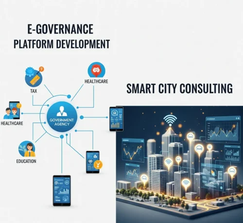 - E-governance platform development, digital identity systems, and blockchain-based service transparency and security solutions.