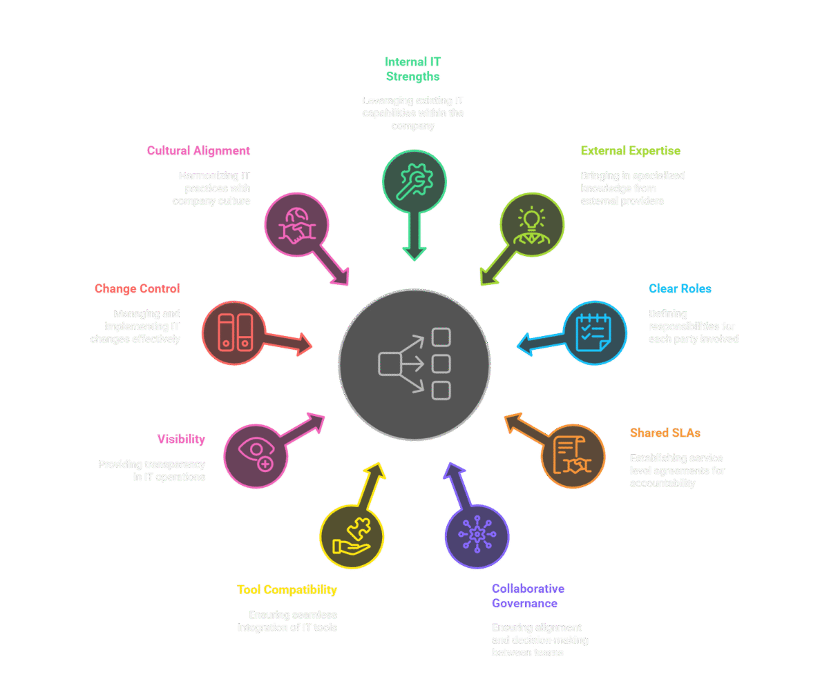 - Co-managed IT operations with shared responsibilities for support, monitoring, and escalation.