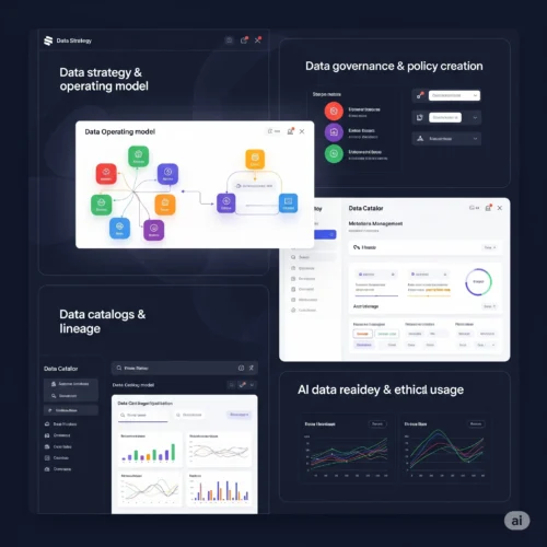- AI and analytics readiness programs with ethical data usage and governance by design.