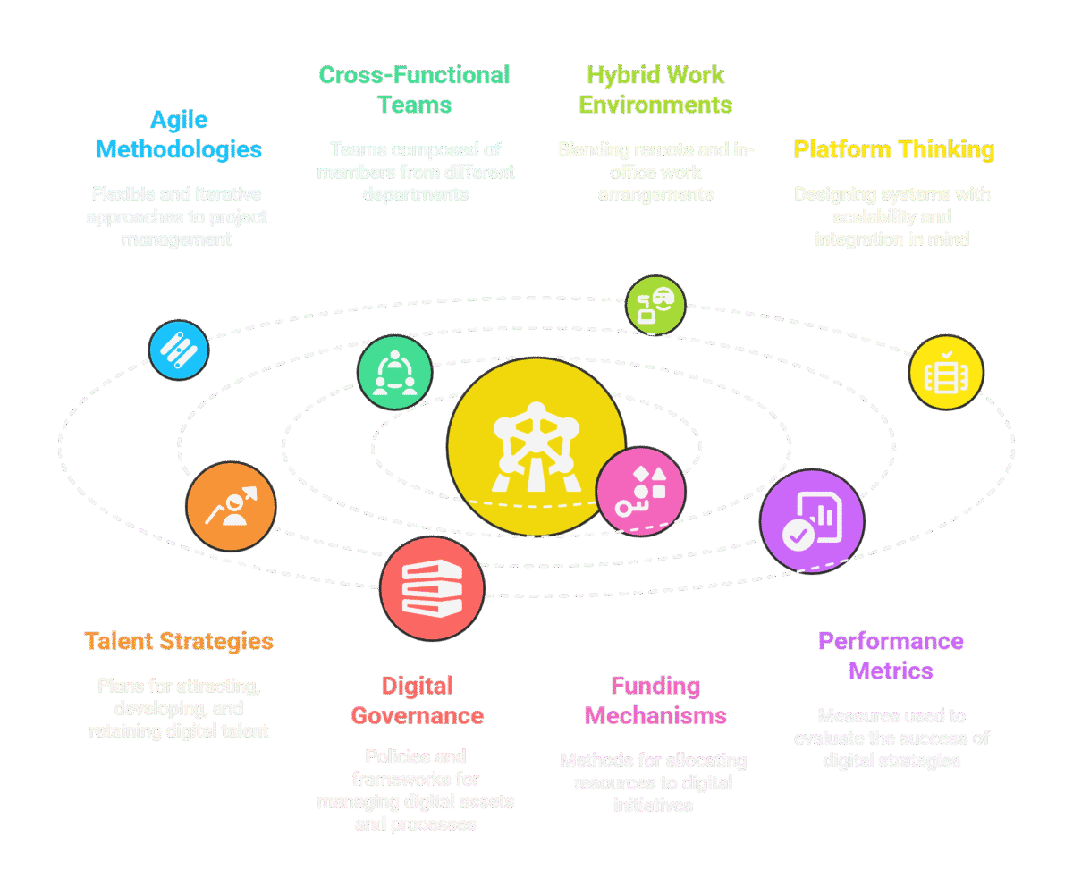 Digital Operating Models (DOMs) define how enterprises operate in a technology-enabled world. Traditional hierarchies and siloed functions are being replaced by modular, data-driven, and cross-functional value streams. The shift to platform-based ecosystems, hybrid workplaces, and agile delivery frameworks is reshaping organizational structures.