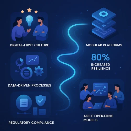 - Modular and product-centric operating models are replacing rigid functional organizations.