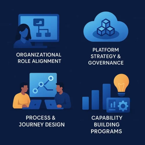 - Workshops and toolkits to align leaders, roles, and culture with new operating paradigms.