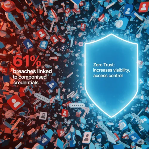 - 61% of breaches are caused by compromised or mismanaged identities and credentials.