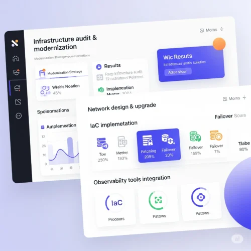 - Infrastructure audit and modernization strategy.Network design and upgrade with SD-WAN and cloud connectivity.