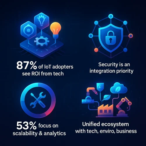 The Internet of Things (IoT) is unlocking unprecedented operational insights and automation across industries—from predictive maintenance in manufacturing to smart logistics, healthcare telemetry, and energy optimization. However, many IoT initiatives fail to scale beyond pilot phases due to integration complexity, data overload, and security concerns. The future of IoT lies in its convergence with cloud computing, edge analytics, AI/ML, and enterprise systems. To realize business value, organizations must integrate sensor data into decision-making workflows, enforce end-to-end device security, and enable real-time responsiveness.