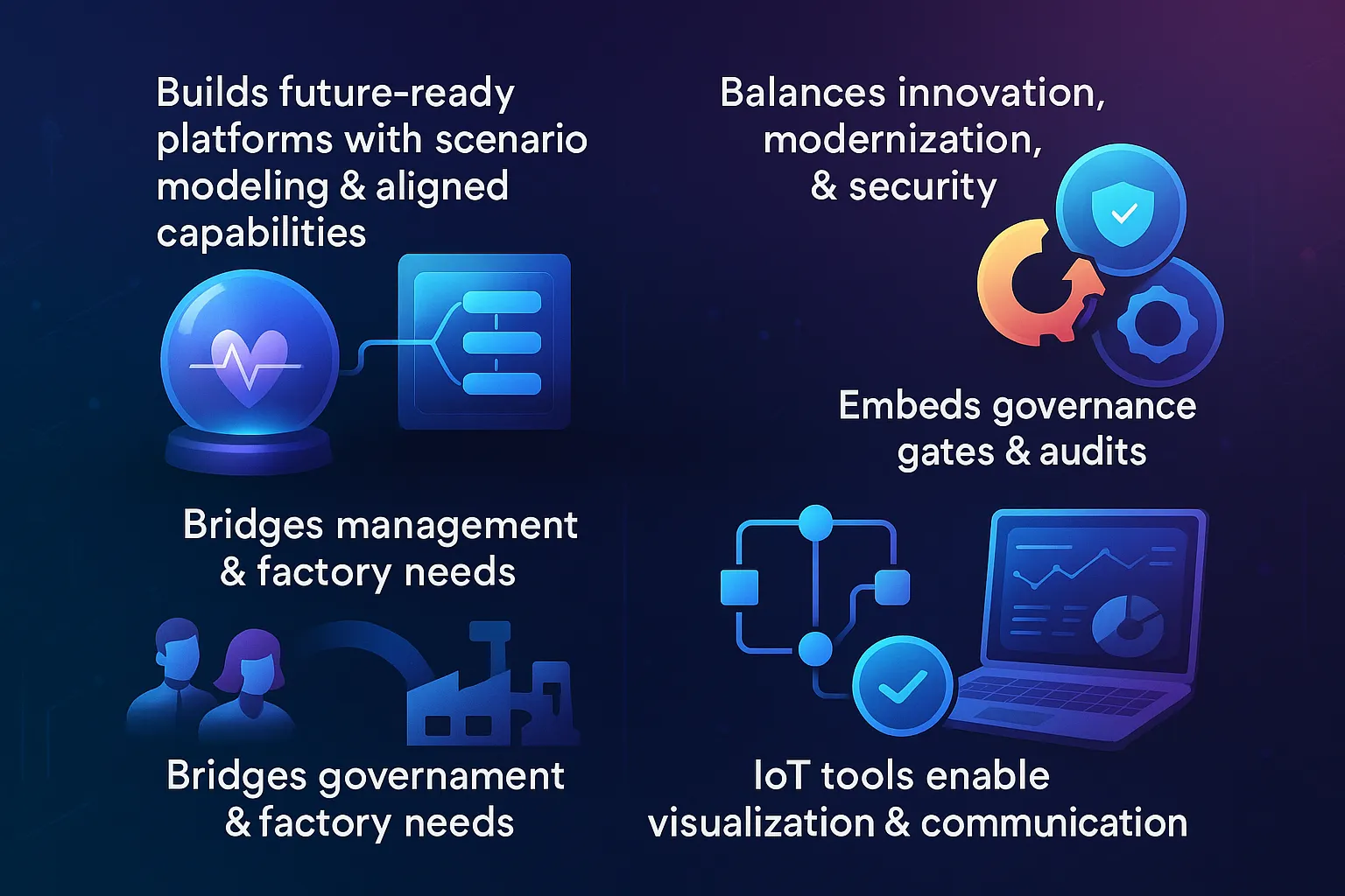 • IoT analytics and AI models enable predictive insights and operational automation.