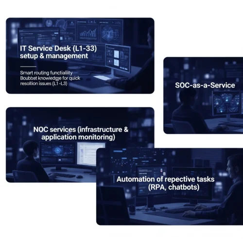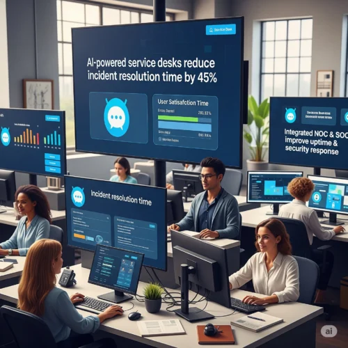 The modern IT service desk is a critical command center for delivering exceptional user experience, business continuity, and risk mitigation. Beyond ticketing, it integrates AI-powered automation, predictive analytics, and proactive incident management. NOC (Network Operations Center) and SOC (Security Operations Center) collaboration enhances infrastructure uptime and cybersecurity response.