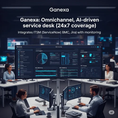 - Ganexa integrates NOC, SOC, and L1–L3 operations for unified, responsive IT support.