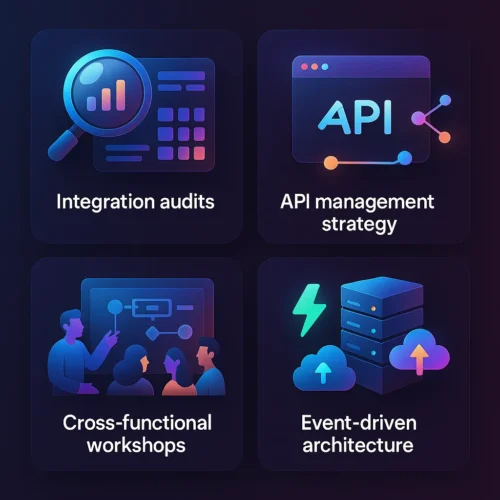 - Systems integration blueprinting across ERP, CRM, WMS, HRMS, and custom applications.