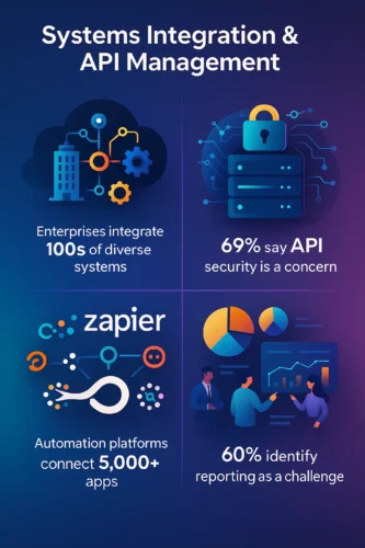 In a digitally connected enterprise, systems integration and API management are foundational to business agility, data unification, and customer experience. As organizations adopt a growing mix of SaaS, cloud-native, and legacy platforms, integration has shifted from back-end plumbing to strategic enabler. API-first design, event-driven architecture, and low-code/no-code platforms are reshaping how organizations connect services and automate workflows. Yet, integration complexity, security risks, and data silos continue to challenge many businesses.