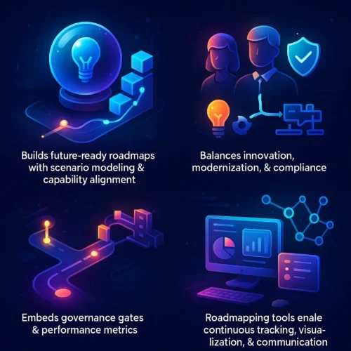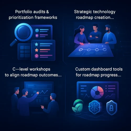 - Multi-year strategic technology roadmaps with prioritization and sequencing of initiatives.